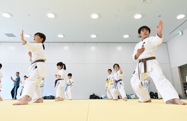 指導者や大人の方が教えながら形を行います。親子で参加する方もたくさんいます。